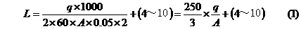 流量測(cè)試缸應(yīng)能滿足如下要求:在記錄一個(gè)完整的控制流量曲線周期內(nèi),活塞不發(fā)生撞缸現(xiàn)象;液壓缸內(nèi)漏很小,只允許成滴,摩擦力很?。换钊透淄材湍?,使用壽命長(zhǎng)。為滿足要求,液壓缸缸徑D (cm)、活塞桿經(jīng)d(cm)、活塞從液壓缸一端運(yùn)動(dòng)到另一端的行程L(cm)、伺服閥的額定流量q(L/min)之間的關(guān)系可用式(1)表示。
