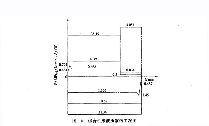 從工況圖可知,在這個(gè)系統(tǒng)的工作循環(huán)內(nèi),液壓缸交替地要求油源提供低壓大流量和高壓小流量的液壓油。最大流量和最小流量之比約為70,而快進(jìn)、快退所需的時(shí)間tl和工進(jìn)所需的時(shí)間t2分別為