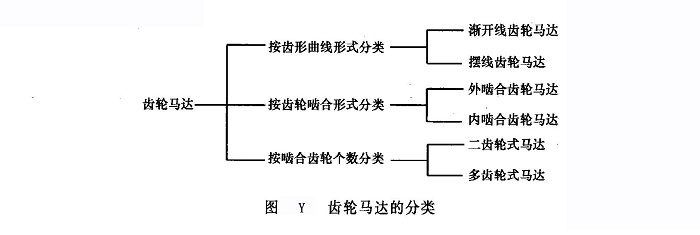 (l)分類 齒輪馬達(dá)是以嚙合原理工作的液壓馬達(dá),屬于高速液壓馬達(dá),它是各種液壓馬達(dá)中結(jié)構(gòu)最簡(jiǎn)單的一種,其詳細(xì)分類如圖Y所示。其中,二齒輪式漸開線外嚙合齒輪馬達(dá)應(yīng)用最普遍。