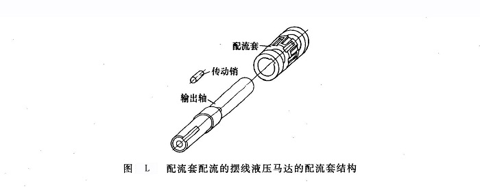 圖L所示為配流套配流的擺線液壓馬達的配流套結構,輸出軸通過傳動銷帶動配流套旋轉(zhuǎn)。配流套在輸出軸上浮動,不受徑向力的影響,從而能保證配流套與殼體配合面的同心,故可延長使用壽命。但傳動鏈的加長會使配流精度有所下降。