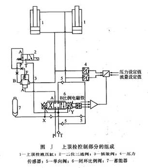 在油溫調(diào)節(jié)和過(guò)濾方面,該泵站采用冷卻器和過(guò)濾器相串聯(lián)的方式,并以一個(gè)小泵作動(dòng)力源,構(gòu)成一個(gè)獨(dú)立于主液壓系統(tǒng)的回路,以便不間斷地清除液壓油中的雜質(zhì),以滿足上頂栓控制部分中閉環(huán)比例閥對(duì)液壓油的要求,同時(shí)也使冷卻器不受液壓沖擊的影響。